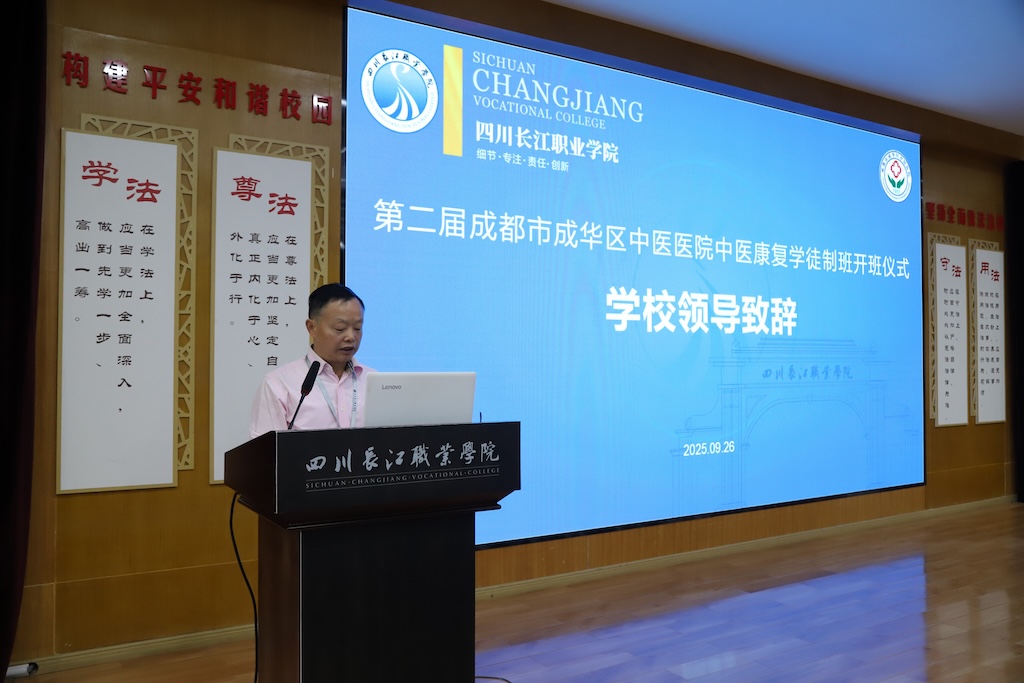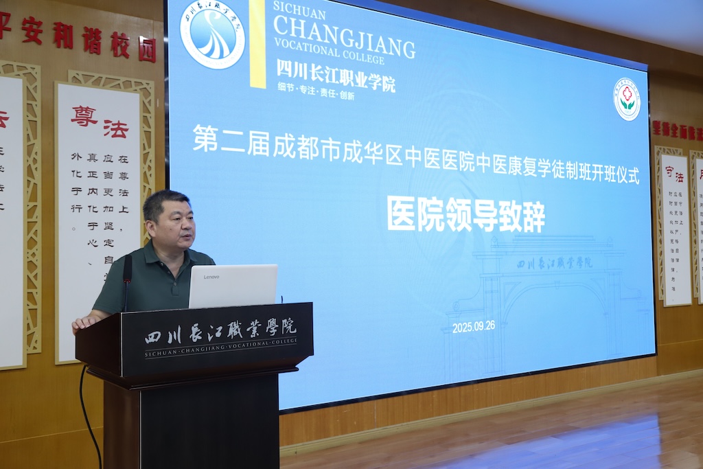 【本網(wǎng)消息】(智慧健康與管理學(xué)院 任青逸供稿)2025年9月26日,第二屆成都市成華區(qū)中醫(yī)醫(yī)院-四川長江職業(yè)學(xué)院中醫(yī)康復(fù)學(xué)徒制班開班儀式舉行。成都市成華區(qū)中醫(yī)醫(yī)院副院長李齊煜、科教科科長吳欣怡及5位醫(yī)師導(dǎo)師,四川長江職院副校長易賢文、智慧健康與管理學(xué)院副院長張京杭、大健康系副主任鄧良岑及學(xué)院相關(guān)負(fù)責(zé)人,與全體學(xué)員參會。