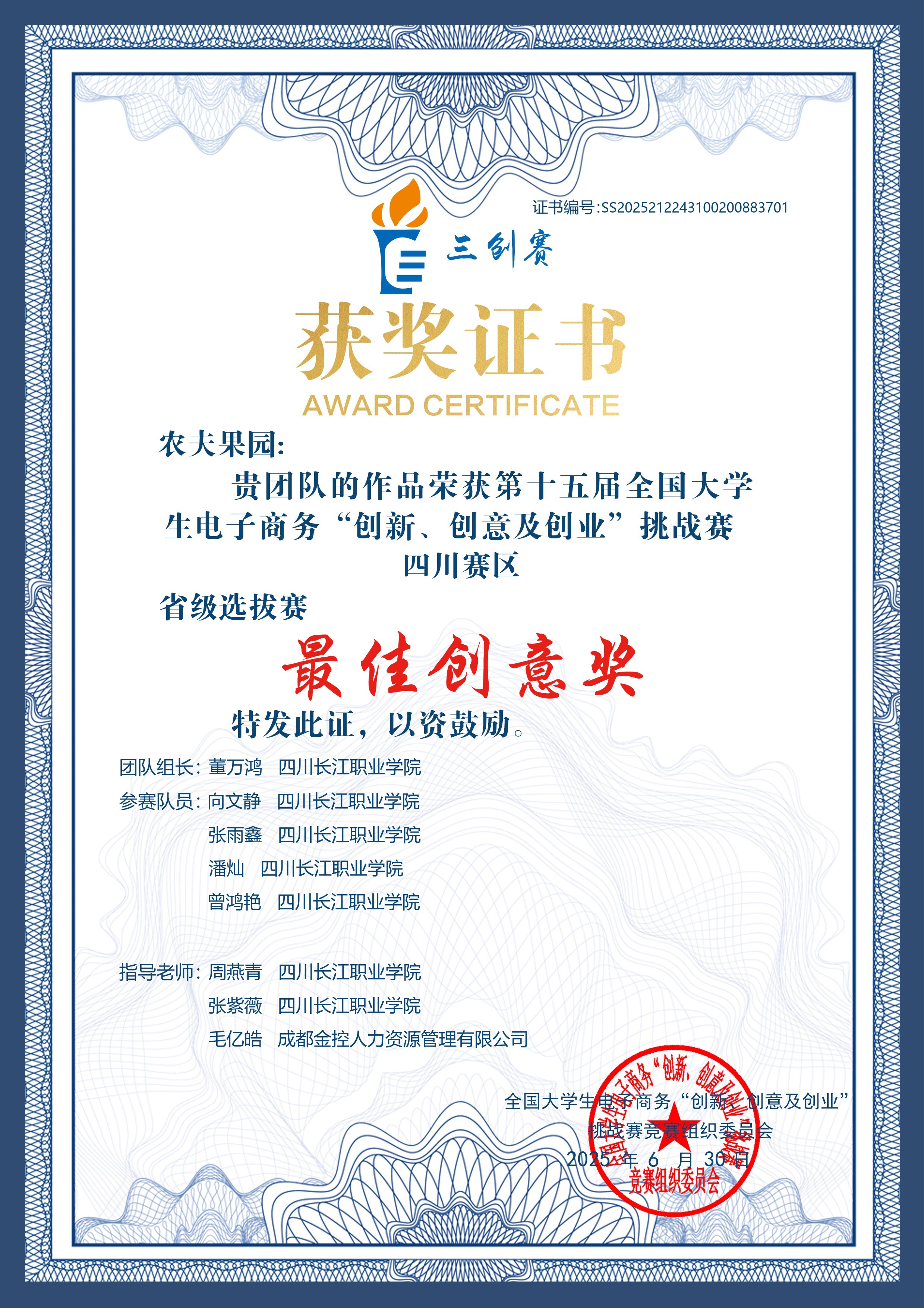【本網(wǎng)消息】(商貿(mào)與融媒體學(xué)院 張紫薇供稿)在第十五屆全國大學(xué)生電子商務(wù)“創(chuàng)新、創(chuàng)意及創(chuàng)業(yè)”挑戰(zhàn)賽四川賽區(qū)省級選拔賽中,商貿(mào)與融媒體學(xué)院“農(nóng)夫果園”學(xué)生團(tuán)隊榮獲二等獎與最佳創(chuàng)意獎兩項榮譽(yù),展現(xiàn)學(xué)院在創(chuàng)新創(chuàng)業(yè)教育方面的顯著成效。
